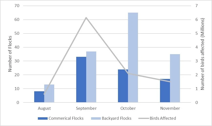 Figure 1: Confirmations of Highly Pathogenic Avian Influenza in US Commercial and Backyard Flocks (2022)