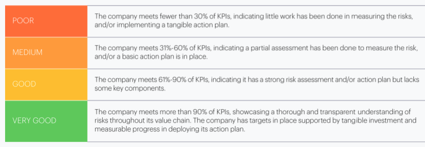 Furthermore, 7/10 pork and poultry producers now include livestock supply chains in their risk assessments to some extent, showing significant progress from the 1/10 that did so in 2022. However, just 4/10 of companies include all their suppliers, meaning that most producers do not have full visibility of their risk exposure.