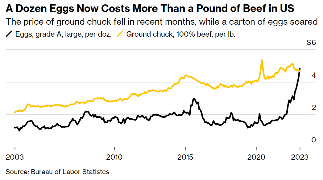 The global Avian flu has affected more than 100 million poultry leading to a high production cost of a carton of eggs in the US, making it more expensive than a pound of ground chuck in January.