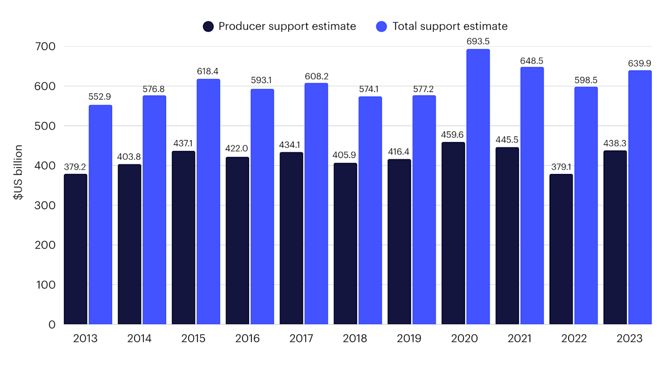 Source: OECD (2024). Agricultural policy monitoring and evaluation: All data [Data set]. OECD Data Explorer. Retrieved 2 October 2025 from https://data-viewer.oecd.org/?chartId=e32b9bb4-a08f-4453-bd54-95702b1eed7f