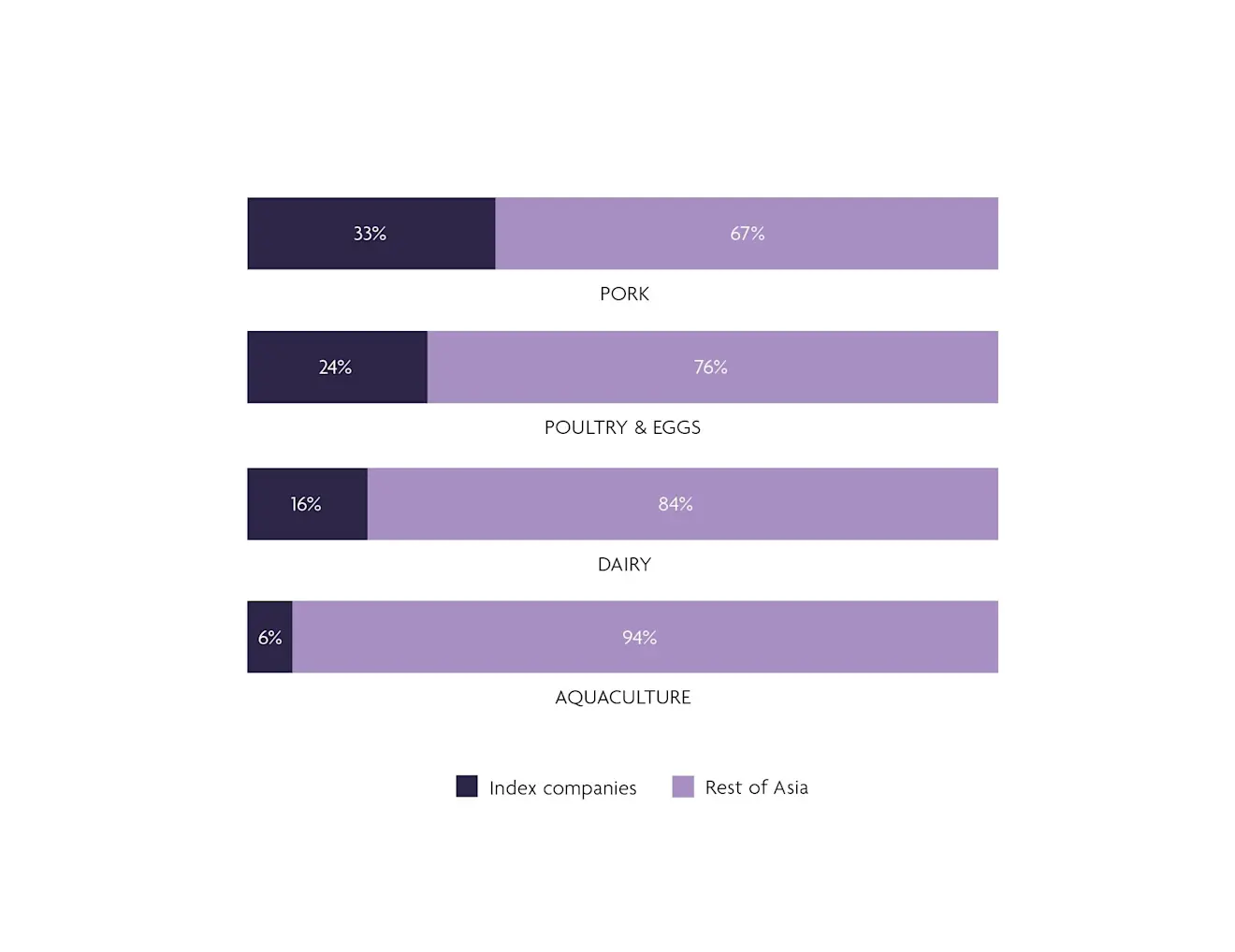 Asian Index companies scored an average of 7% on animal welfare compared to 30% attained by all 60 Index companies.