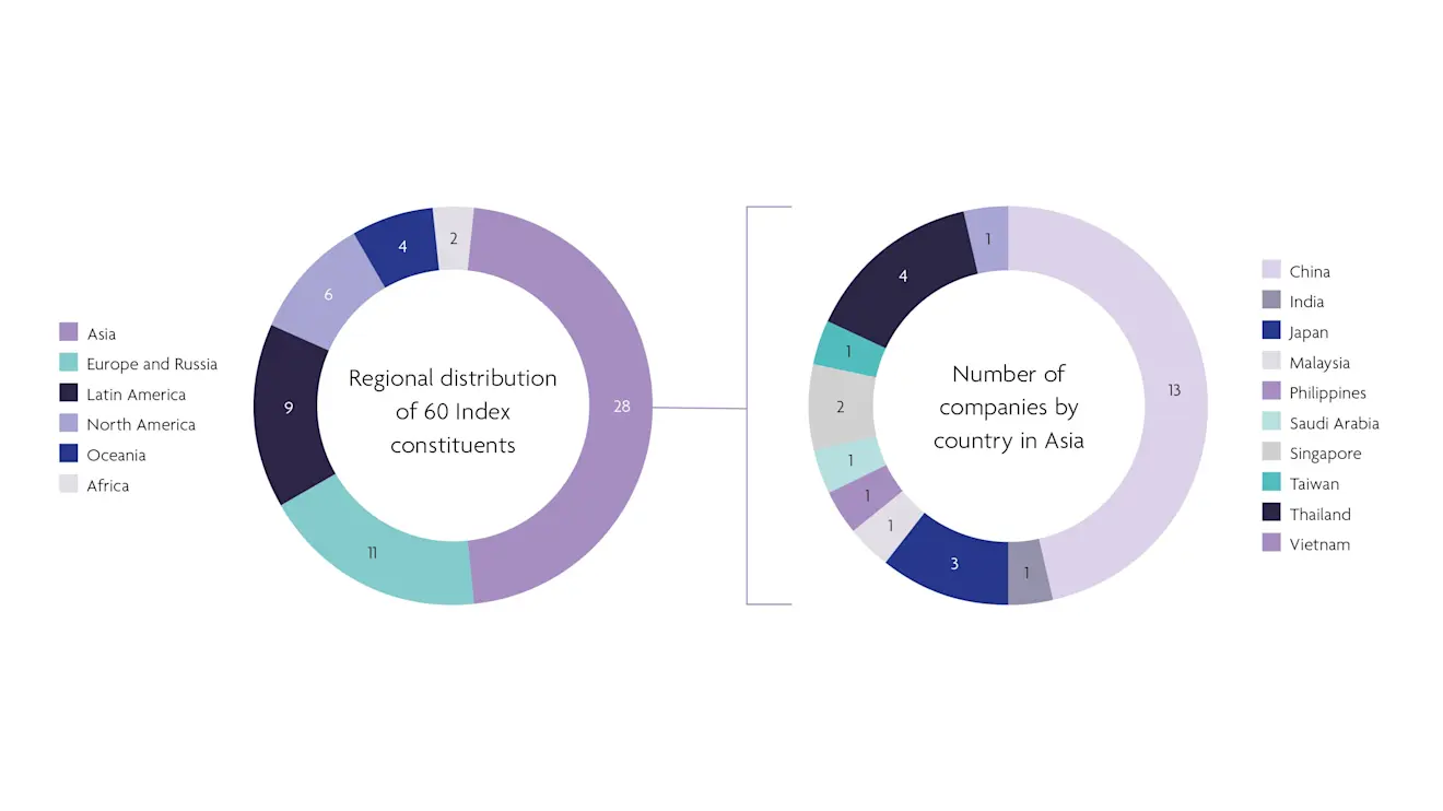 28 Asian companies scored an average of 12% on managing greenhouse gas emissions, as compared with 17% attained by all 60 Index companies.